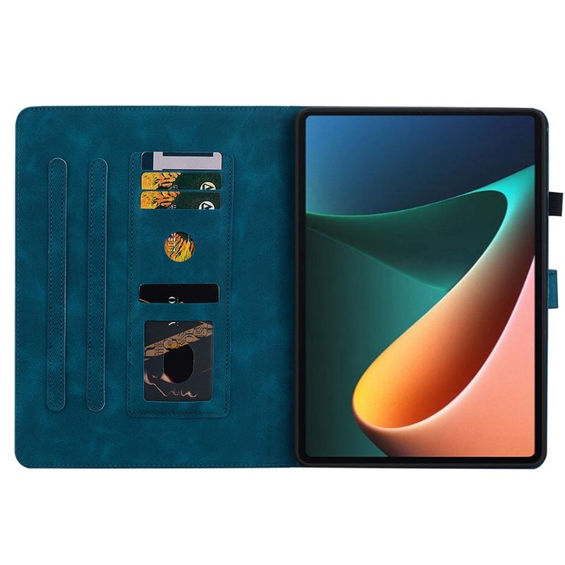 For Xiaomi Pad 5 / Pad 5 Pro Lily Embossed Leather Smart Tablet Case(Dark Blue)