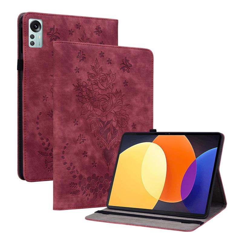 For Xiaomi Pad 5 Pro 12.4 Butterfly Rose Embossed Leather Tablet Case(Red)