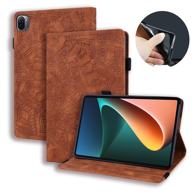 For Xiaomi Pad 5 Pro 12.4 inch Calf Texture Embossed Flip Leather Tablet Case(Brown)