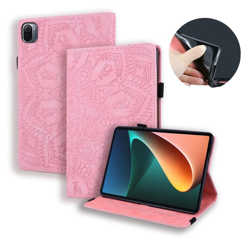 For Xiaomi Pad 5 Pro 12.4 inch Calf Texture Embossed Flip Leather Tablet Case(Pink)