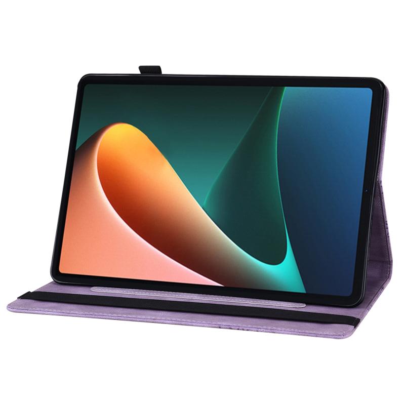 For Xiaomi Pad 5 Pro Big Butterfly Embossed Leather Tablet Case(Purple)