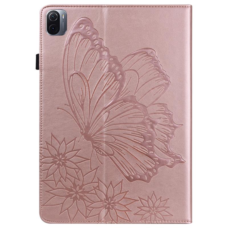 For Xiaomi Pad 5 Pro Big Butterfly Embossed Leather Tablet Case(Rose Gold)