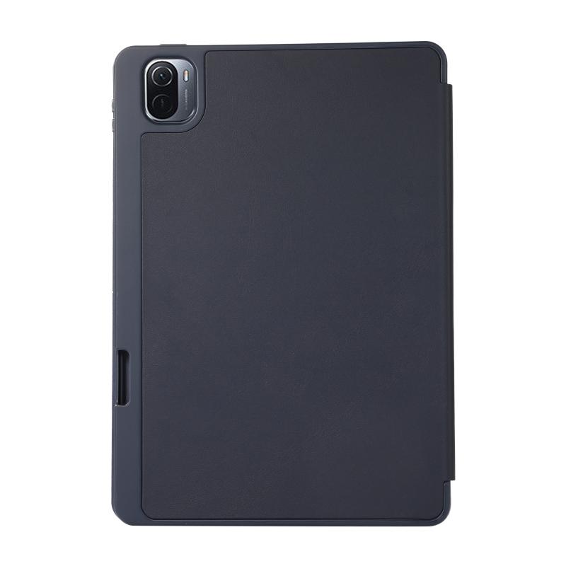 For Xiaomi Pad 5 Solid Color 3-folding Leather Tablet Case(Dark Blue)
