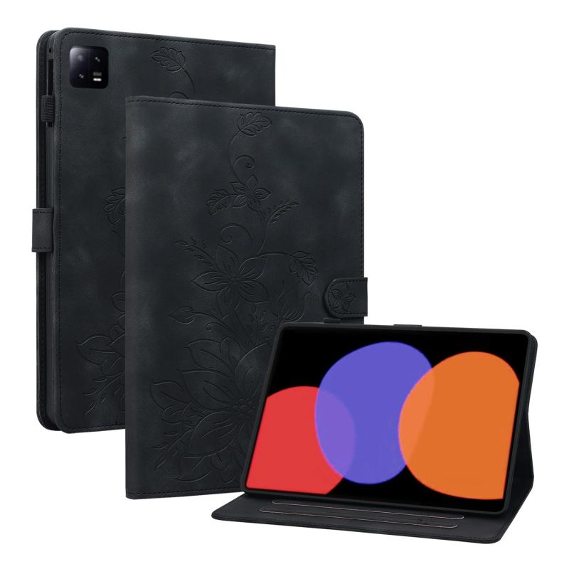 For Xiaomi Pad 6 11.0 2023 Lily Embossed Leather Tablet Case(Black)