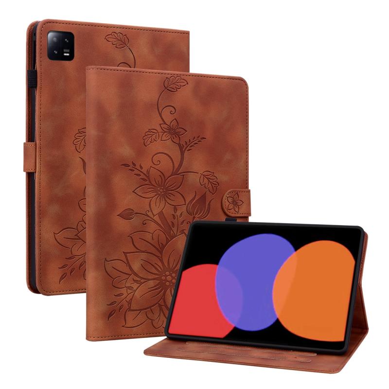 For Xiaomi Pad 6 11.0 2023 Lily Embossed Leather Tablet Case(Brown)