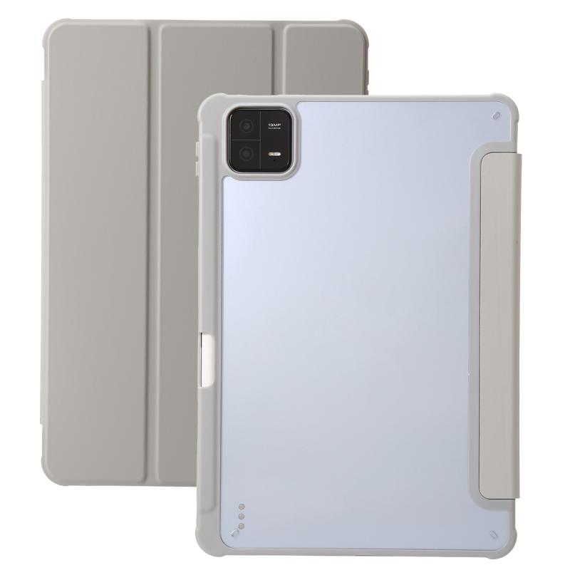 For Xiaomi Pad 6 3-Fold Clear Acrylic Leather Tablet Case(Grey)