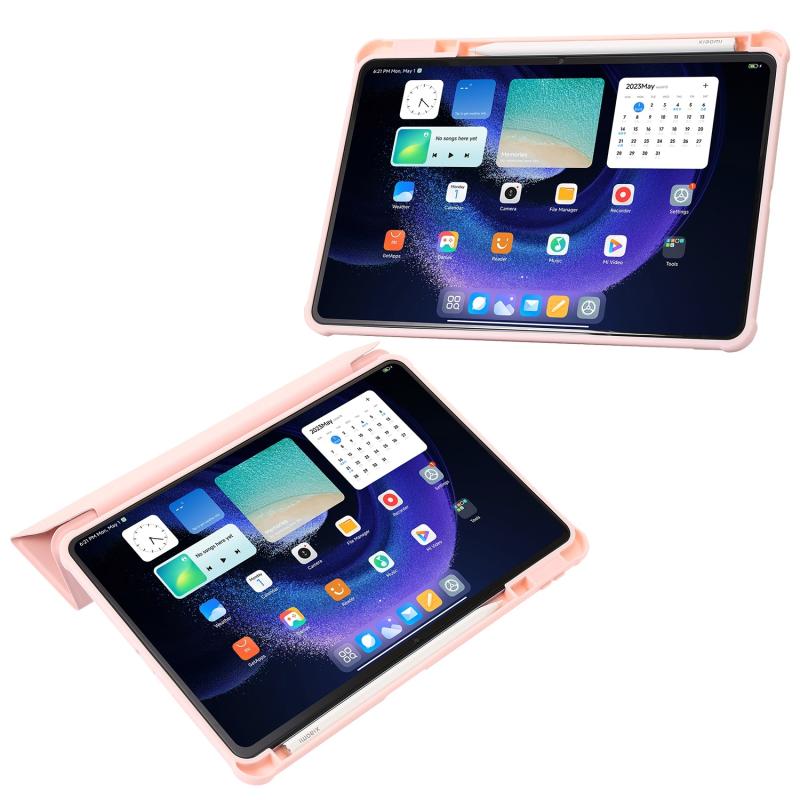 For Xiaomi Pad 6 3-Fold Clear Acrylic Leather Tablet Case(Pink)