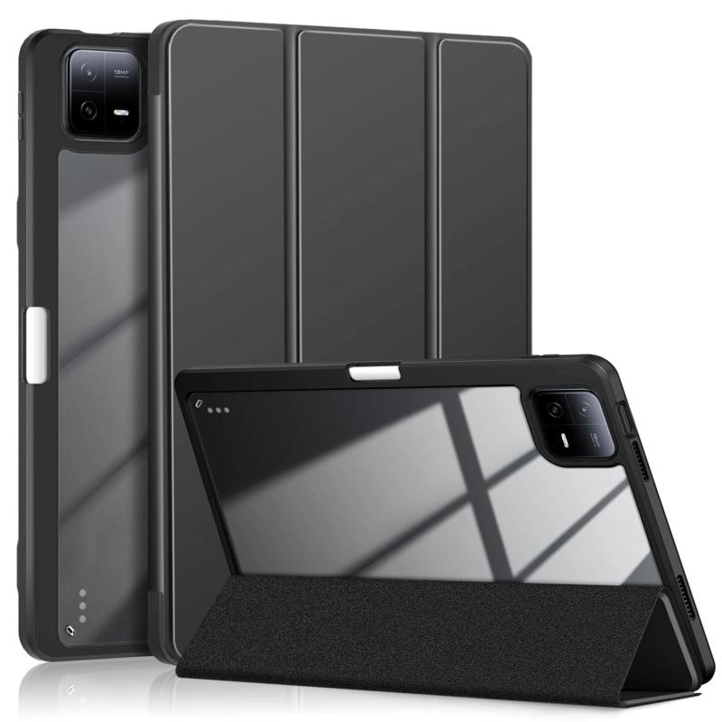 For Xiaomi Pad 6 / 6 Pro Acrylic 3-Fold Solid Color Smart Leather Tablet Case(Black)