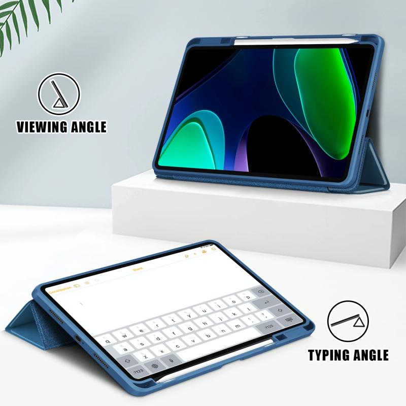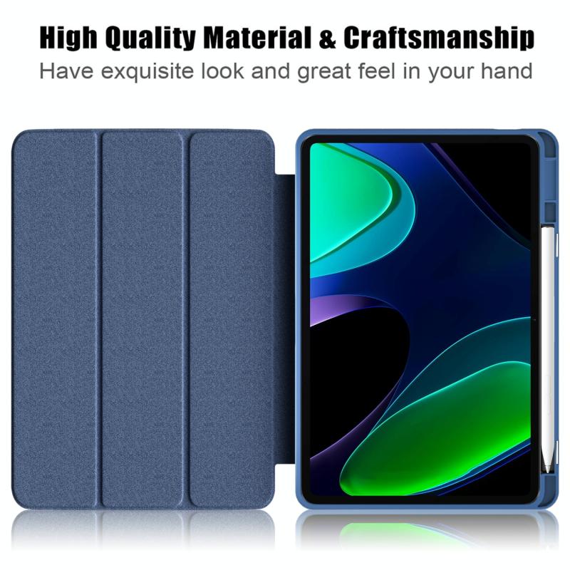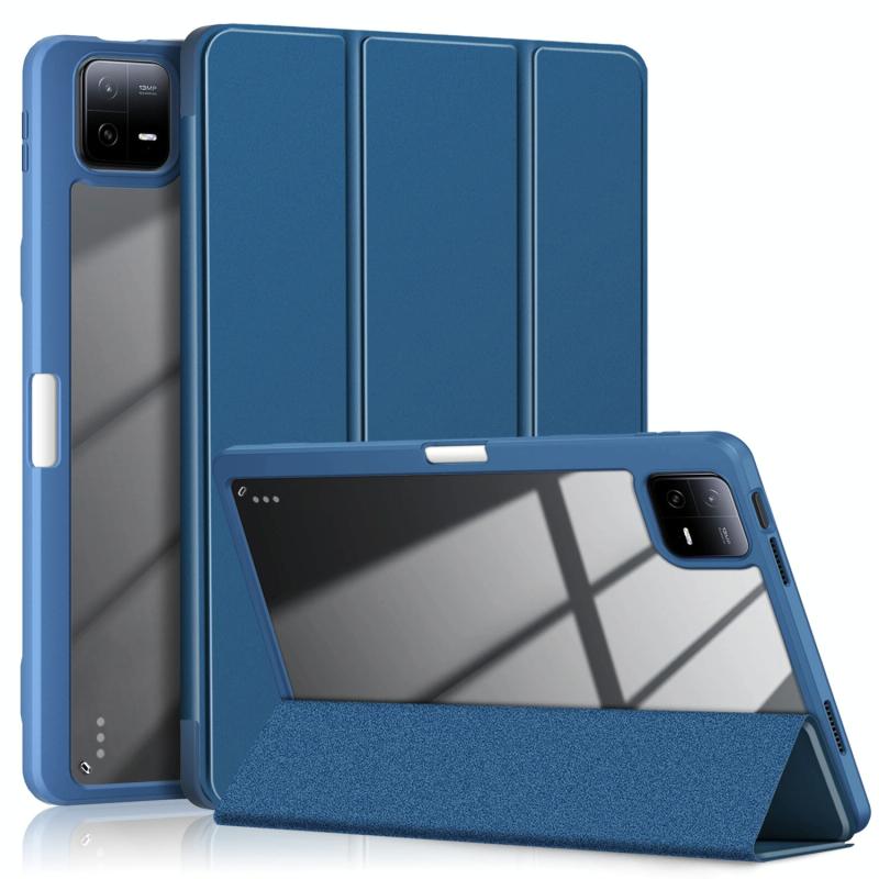 For Xiaomi Pad 6 / 6 Pro Acrylic 3-Fold Solid Color Smart Leather Tablet Case(Dark Blue)