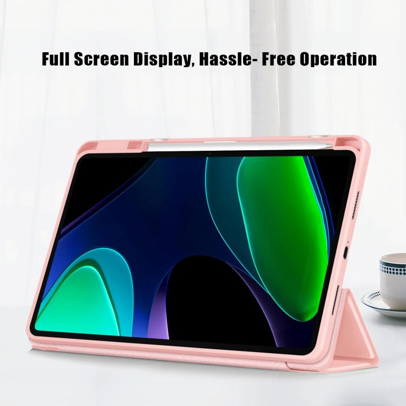 For Xiaomi Pad 6 / 6 Pro Acrylic 3-Fold Solid Color Smart Leather Tablet Case(Pink)