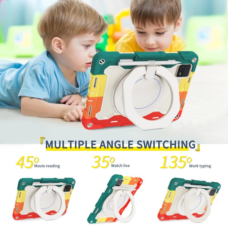 For Xiaomi Pad 6/6 Pro Armor Portable Rotating Ring Holder Silicone Tablet Case(Colorful Red)