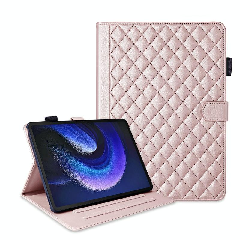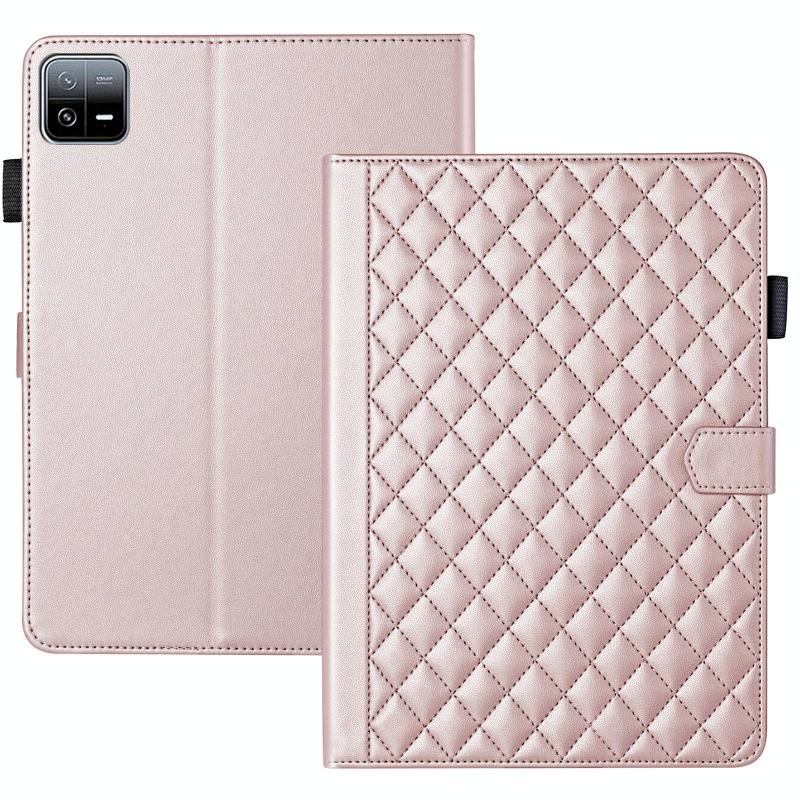 For Xiaomi Pad 6 / 6 Pro Rhombus Lattice Leather Tablet Case(Rose Gold)