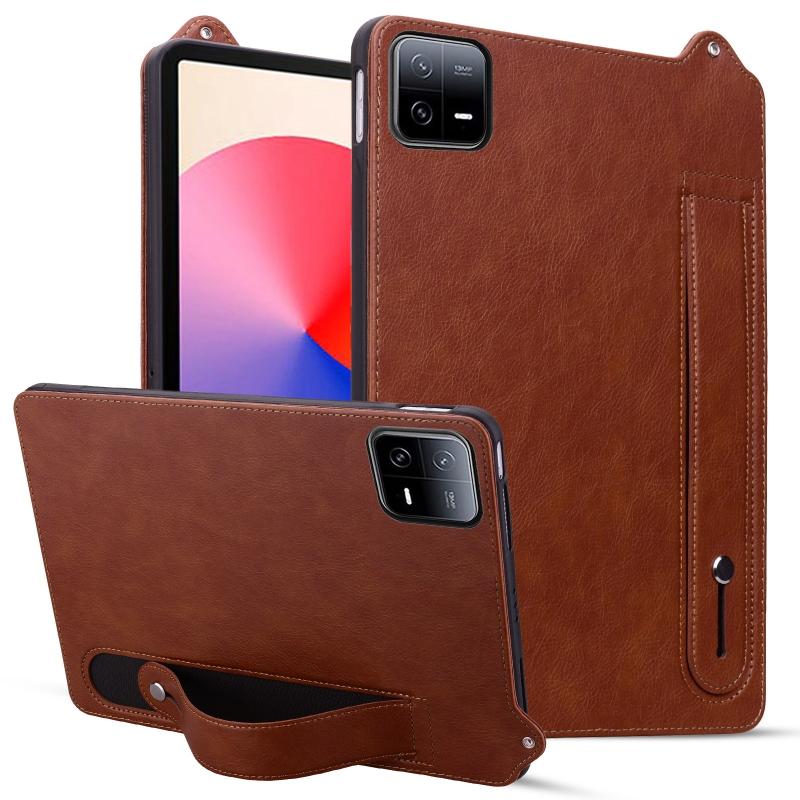 For Xiaomi Pad 6 / 6 Pro TPU Leather Back Tablet Case with Wristband(Brown)