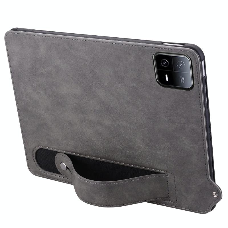 For Xiaomi Pad 6 / 6 Pro TPU Leather Back Tablet Case with Wristband(Grey)