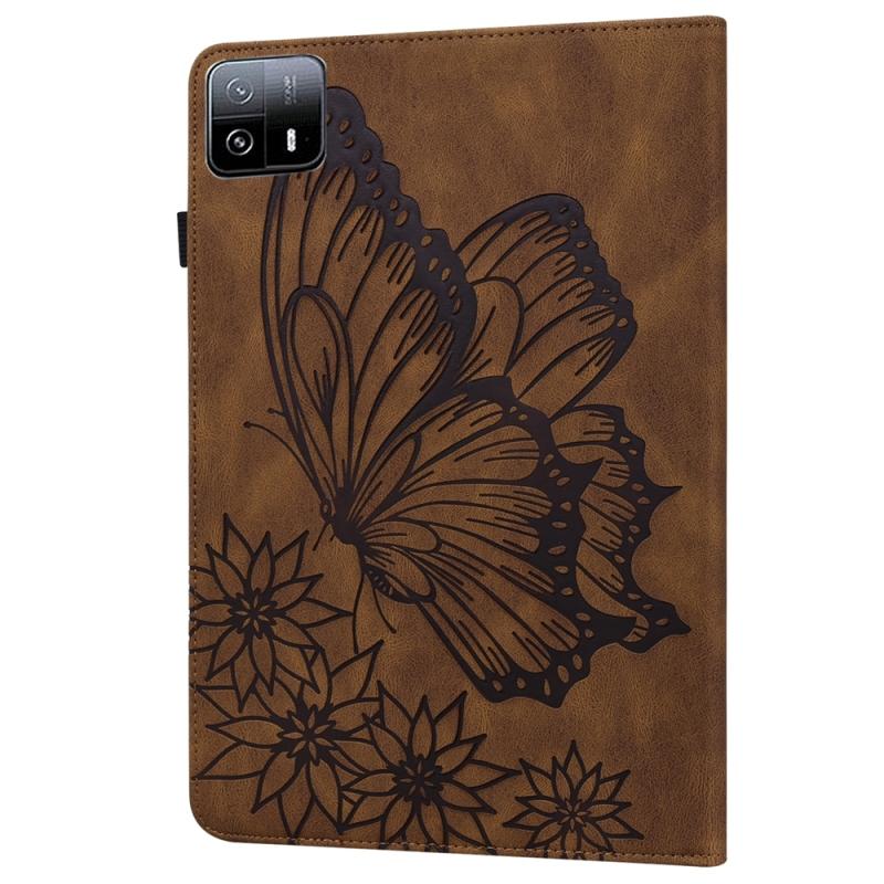 For Xiaomi Pad 6 Max 14 2023 Big Butterfly Embossed Leather Tablet Case(Brown)