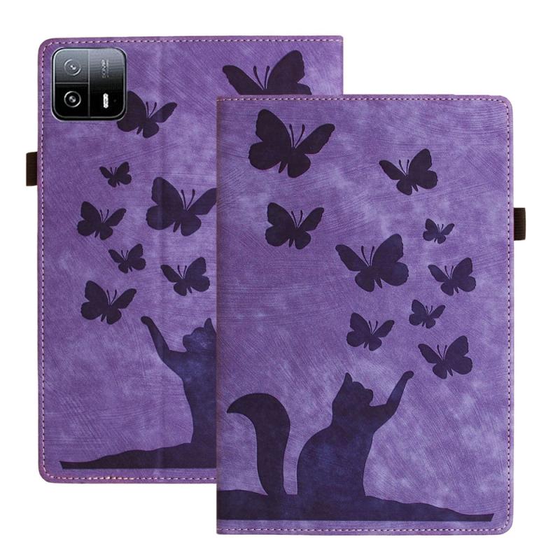 For Xiaomi Pad 6 Max 14 2023 Butterfly Cat Embossing Leather Tablet Case(Purple)
