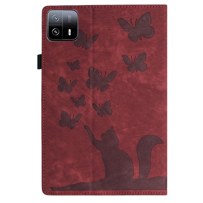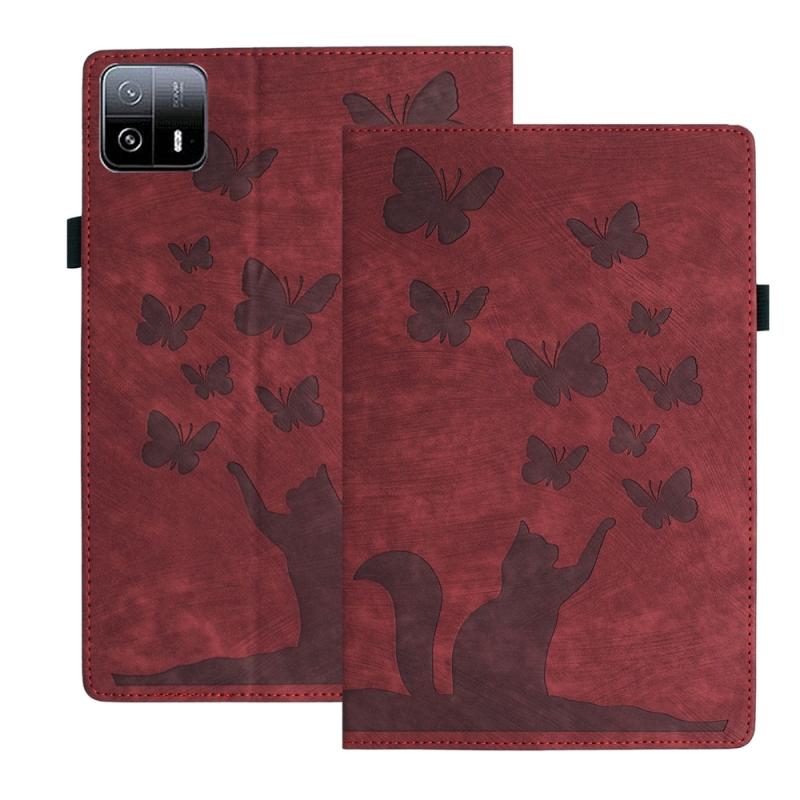 For Xiaomi Pad 6 Max 14 2023 Butterfly Cat Embossing Leather Tablet Case(Red)