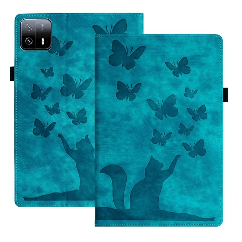 For Xiaomi Pad 6 Max 14 2023 Butterfly Cat Embossing Leather Tablet Case(Sky Blue)