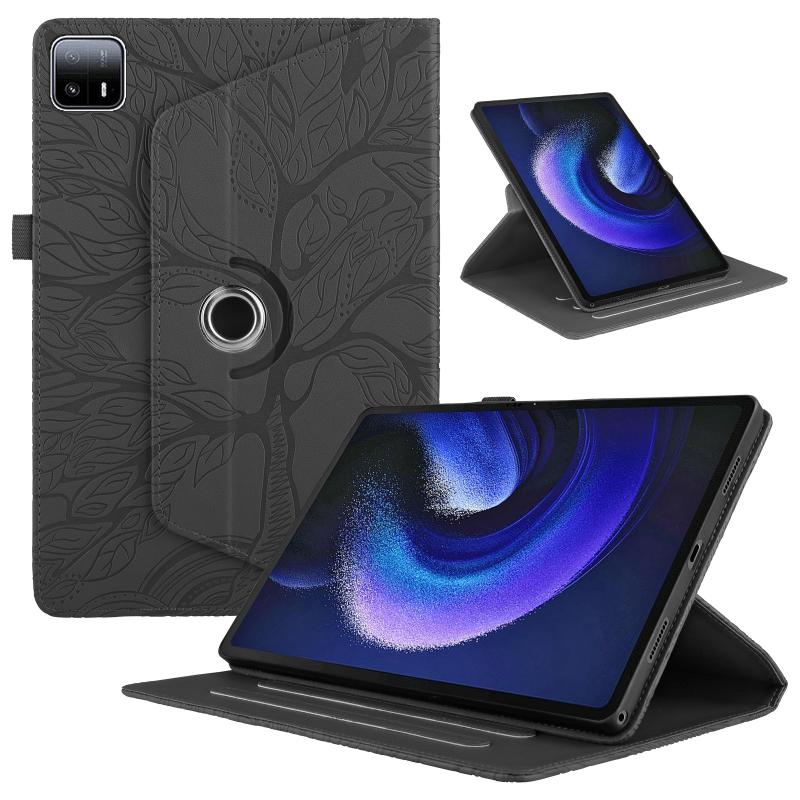 For Xiaomi Pad 6 Max 2023 Tree Life Embossed Rotation Leather Tablet Case(Black)