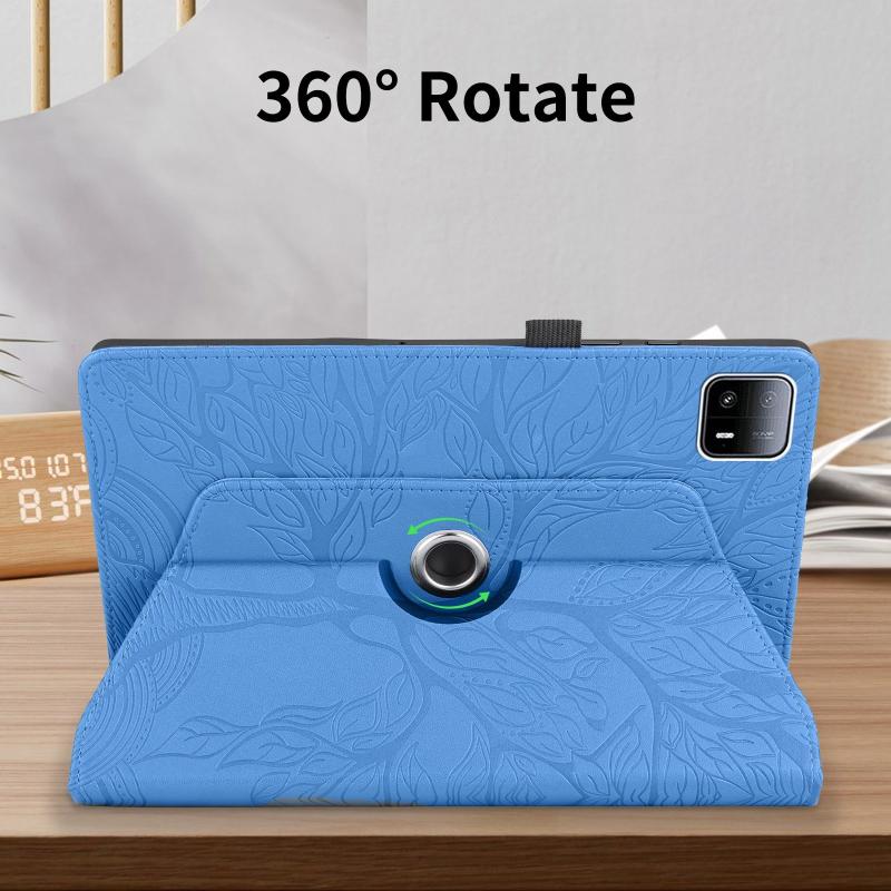 For Xiaomi Pad 6 Max 2023 Tree Life Embossed Rotation Leather Tablet Case(Blue)