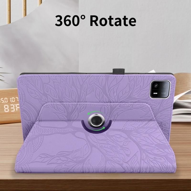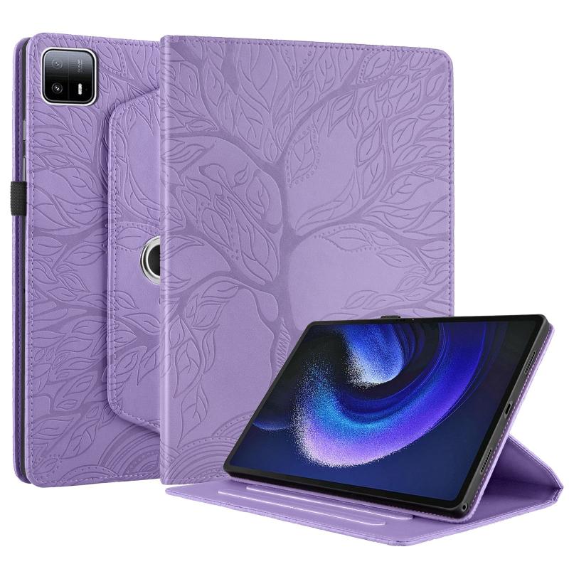 For Xiaomi Pad 6 Max 2023 Tree Life Embossed Rotation Leather Tablet Case(Purple)