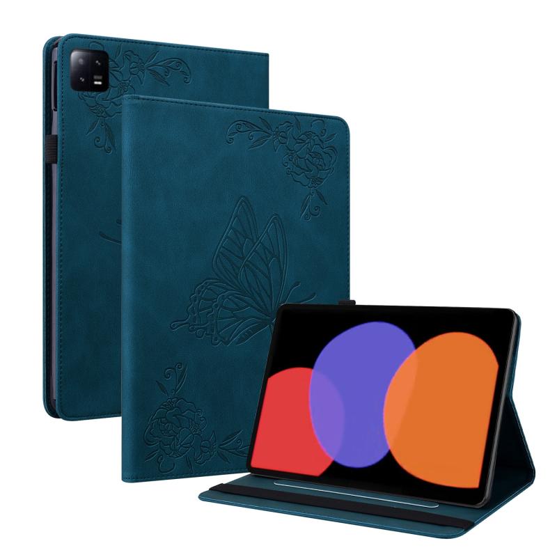 For Xiaomi Pad 6 / Pad 6 Pro Butterfly Flower Embossed Leather Tablet Case(Blue)