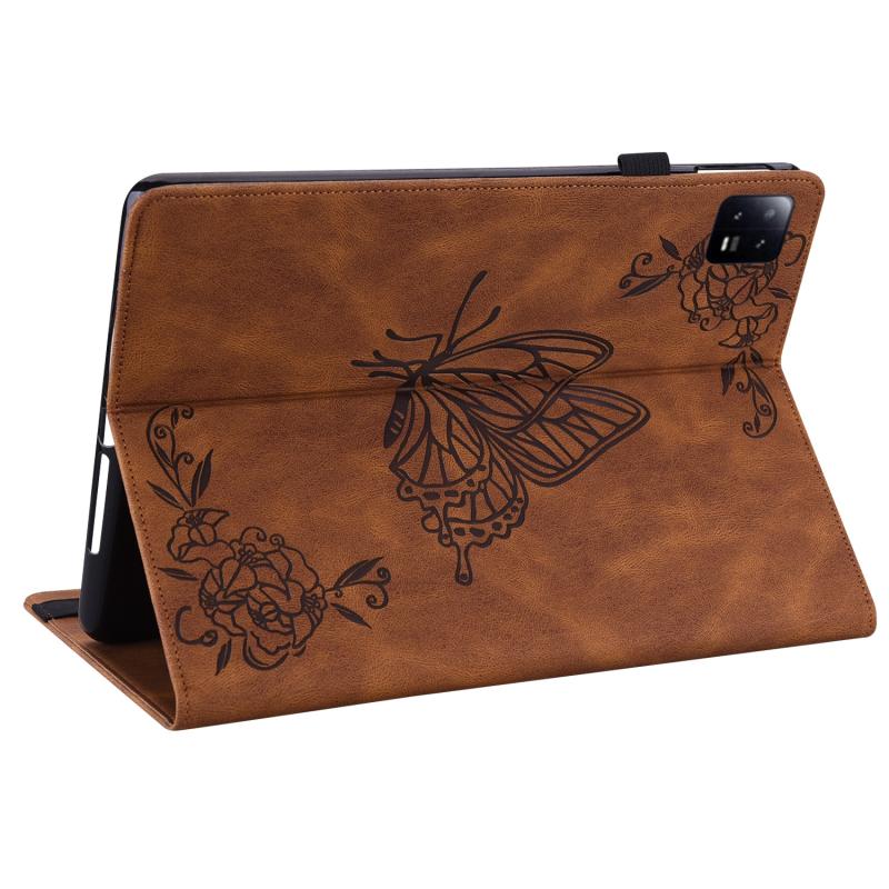 For Xiaomi Pad 6 / Pad 6 Pro Butterfly Flower Embossed Leather Tablet Case(Brown)