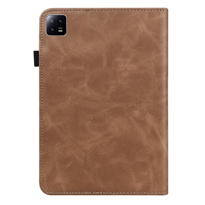 For Xiaomi Pad 6 / Pad 6 Pro Embossed Striped Leather Tablet Case(Brown)