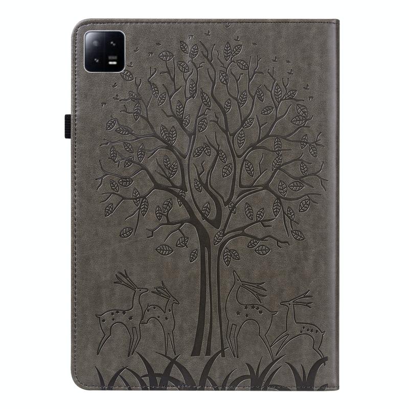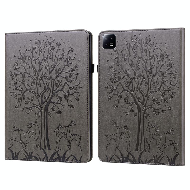 For Xiaomi Pad 6 / Pad 6 Pro Tree & Deer Embossed Leather Tablet Case(Grey)
