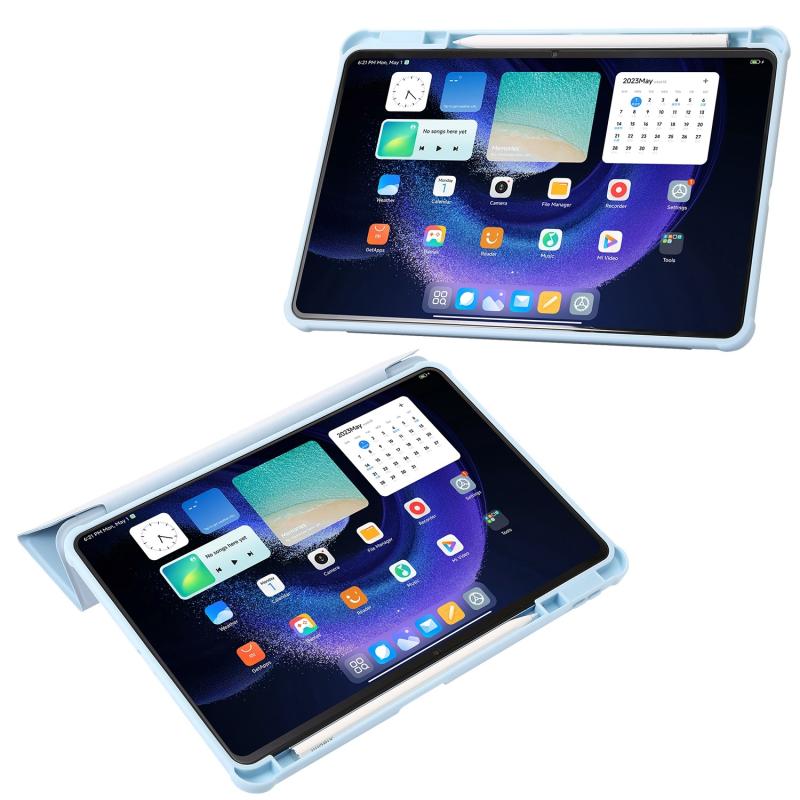 For Xiaomi Pad 6 Pro Clear Acrylic Deformation Leather Tablet Case(Ice Blue)