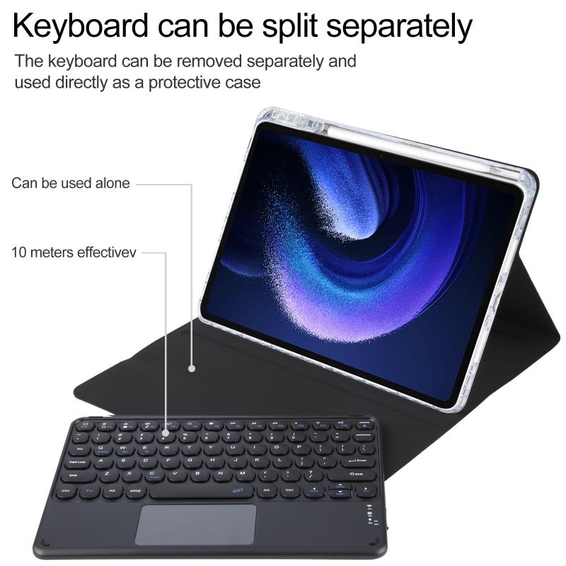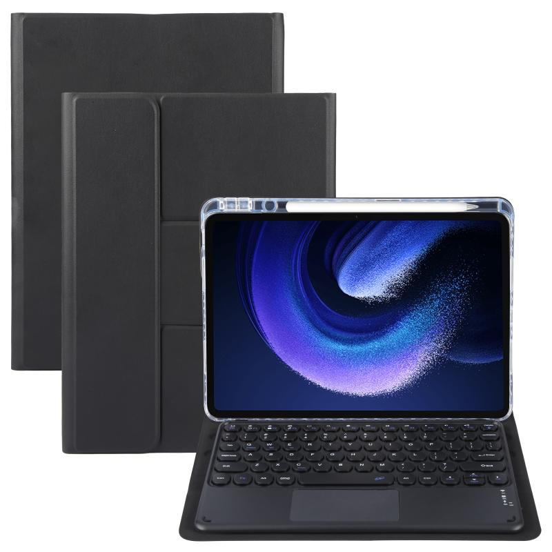 For Xiaomi Pad 6 Round Button Bluetooth Keyboard Rotatable Holder Leather Case with Touchpad(Black)