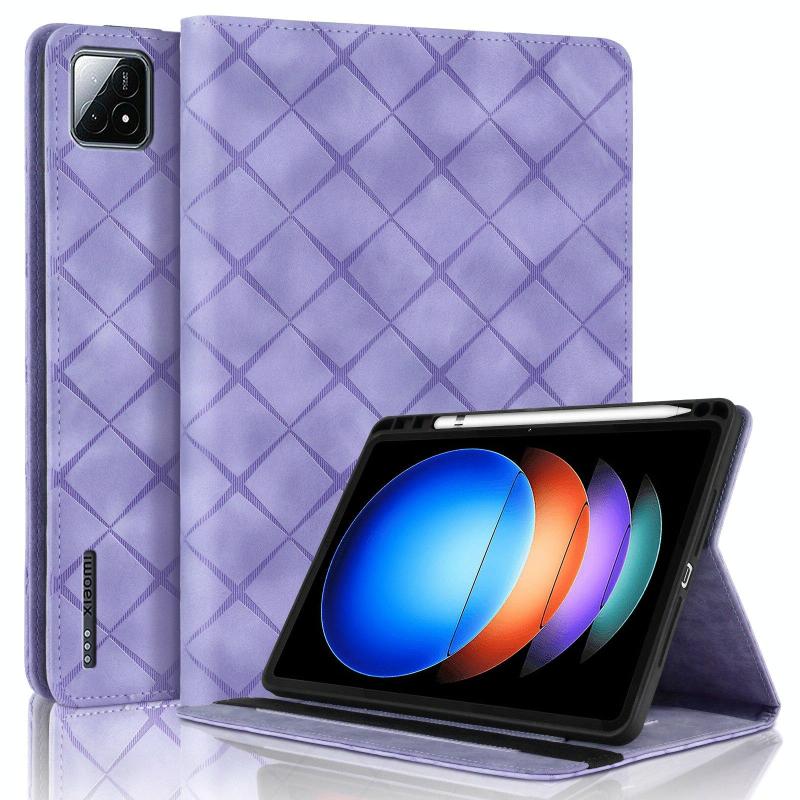 For Xiaomi Pad 6S Pro 12.4 Rhombus Embossing Leather Tablet Case(Purple)