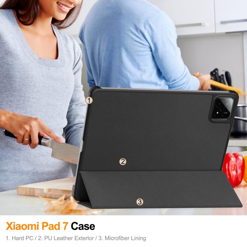For Xiaomi Pad 7 / 7 Pro Custer Solid Color 3-Fold Stand Leather Smart Tablet Case(Black)