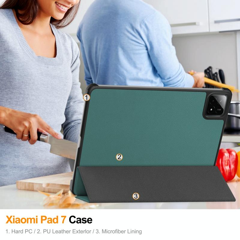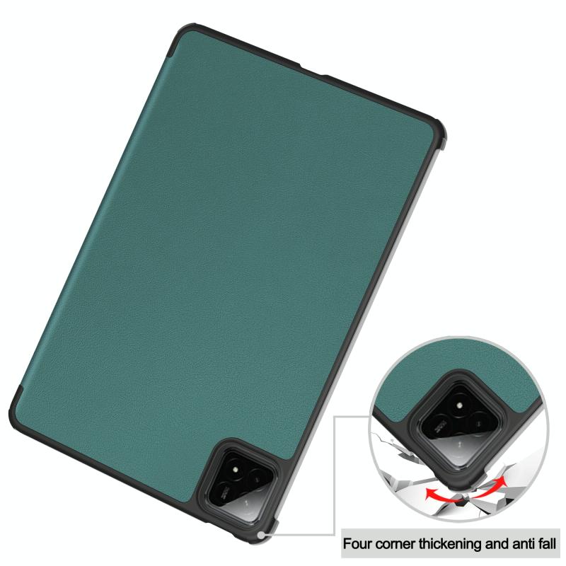 For Xiaomi Pad 7 / 7 Pro Custer Solid Color 3-Fold Stand Leather Smart Tablet Case(Green)