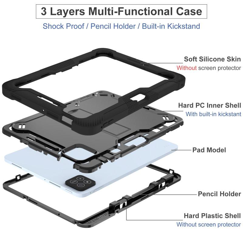 For Xiaomi Pad 7 / 7 Pro Shockproof Silicone Hybrid PC Tablet Case with Holder(Black)