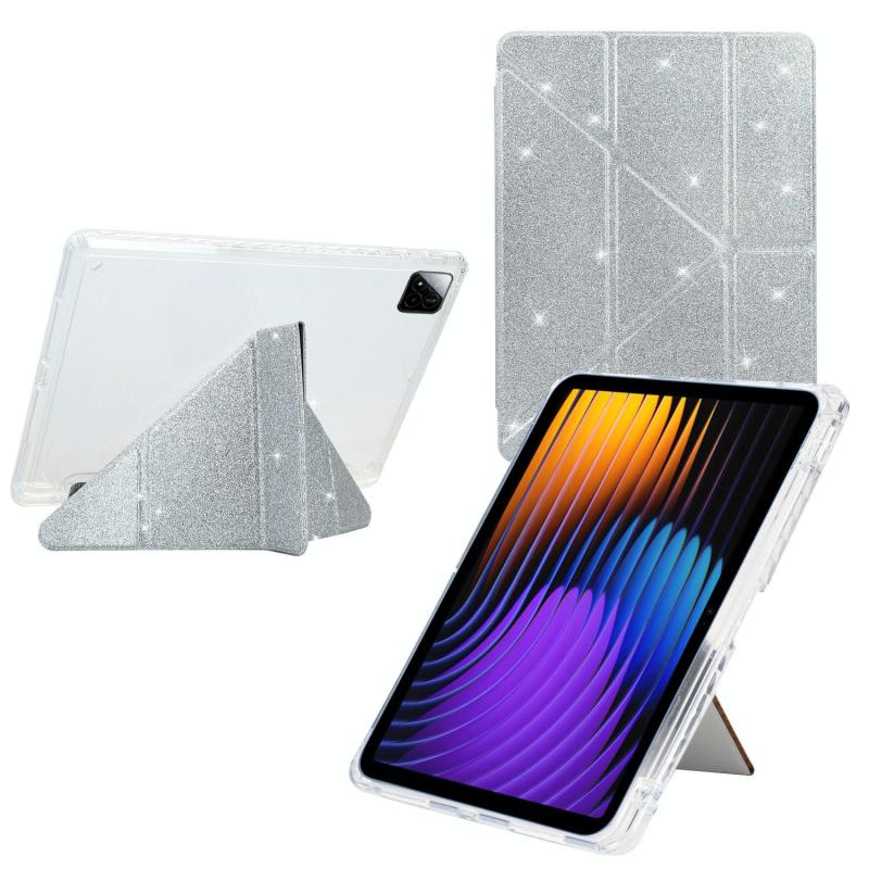 For Xiaomi Pad 7 / 7 Pro Y-Fold Clear Acrylic Glitter Smart Leather Tablet Case(Silver)