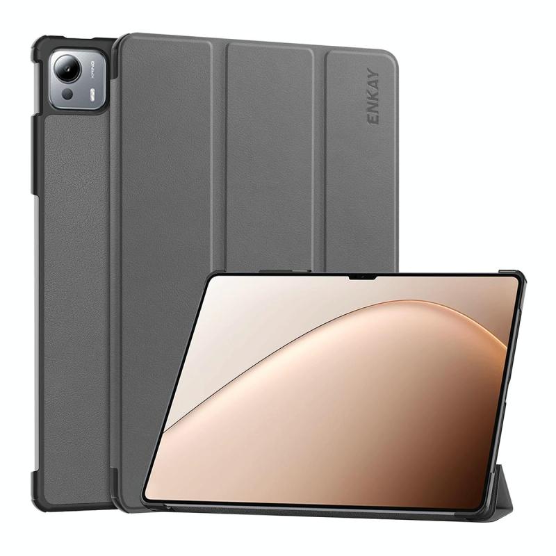For Xiaomi Pad 7 Ultra 14 ENKAY Tri-fold Custer Texture Leather Smart Tablet Case(Grey) (ENKAY)