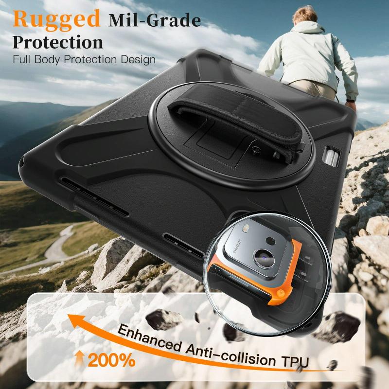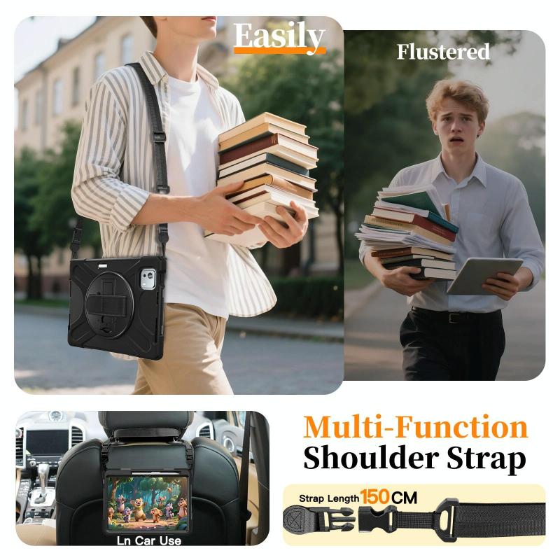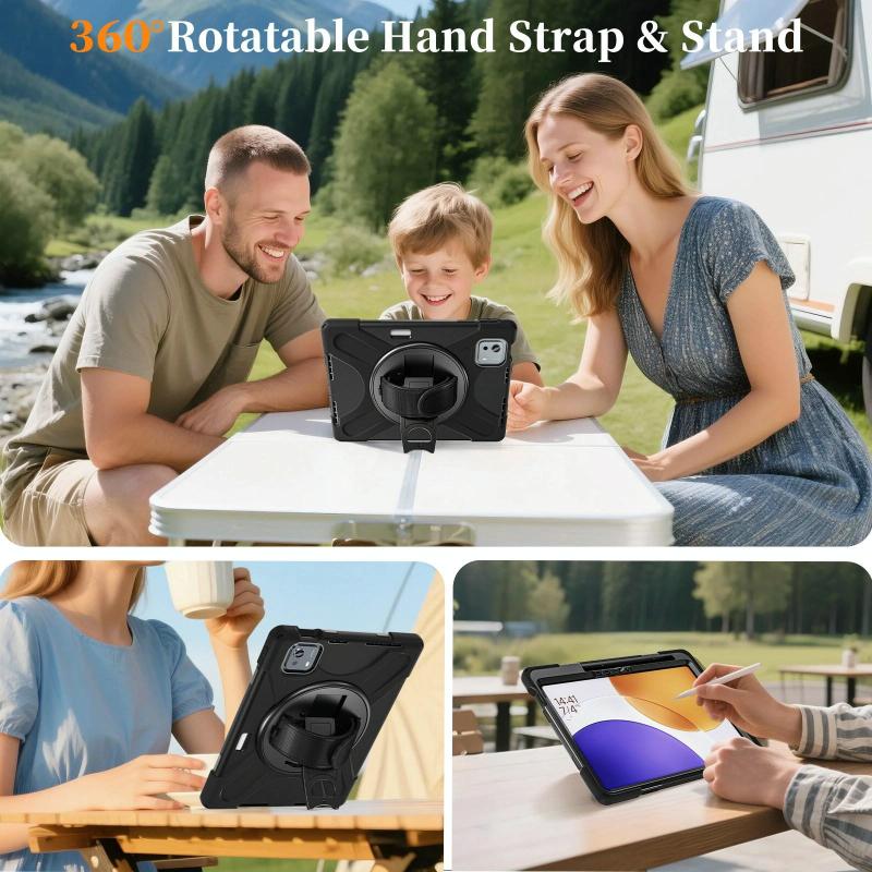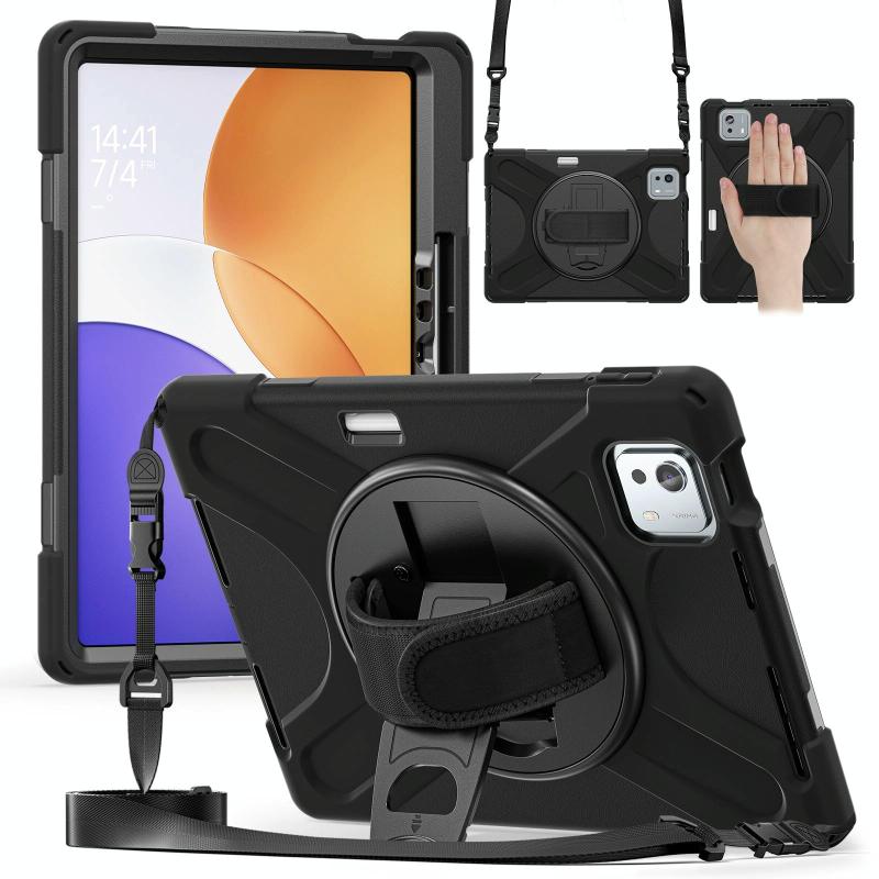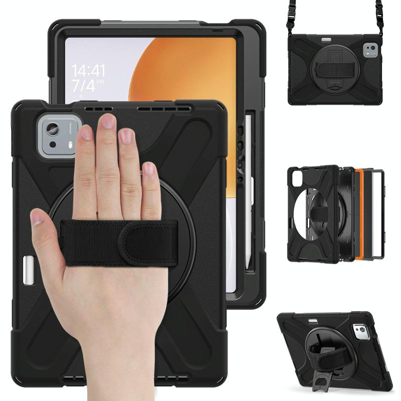 For Xiaomi Pad 7S Pro / 6S Pro Rotatable Holder Silicone Hybrid PC Tablet Case with Shoulder Strap(Black)