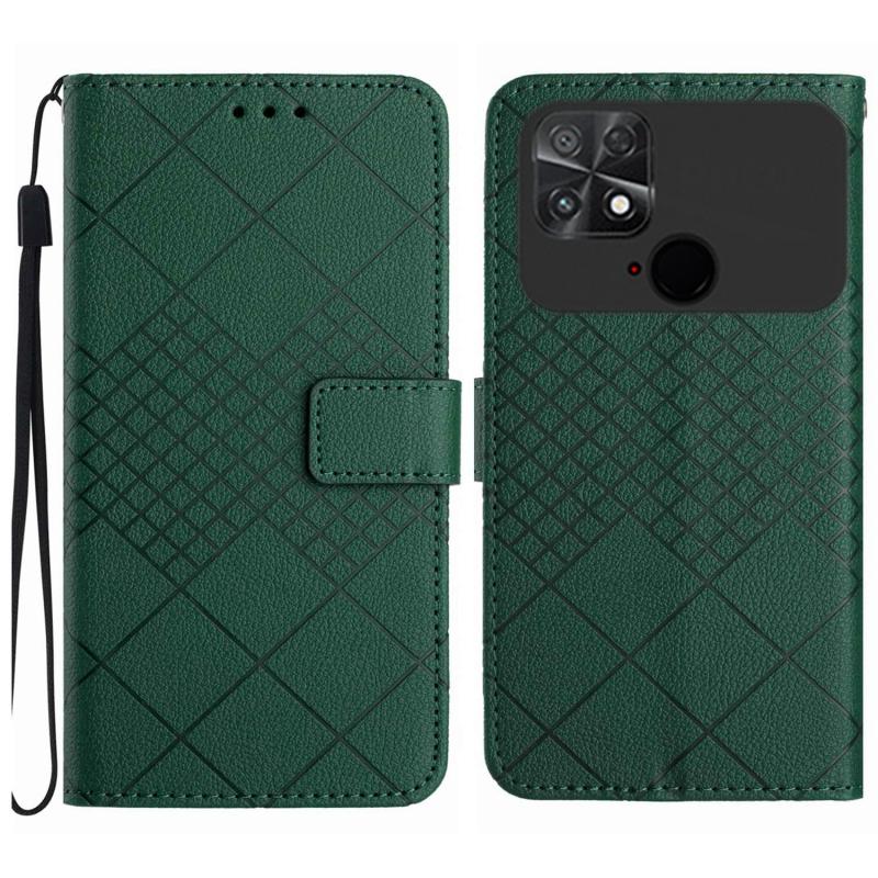For Xiaomi Poco C40 Rhombic Grid Texture Leather Phone Case(Green)