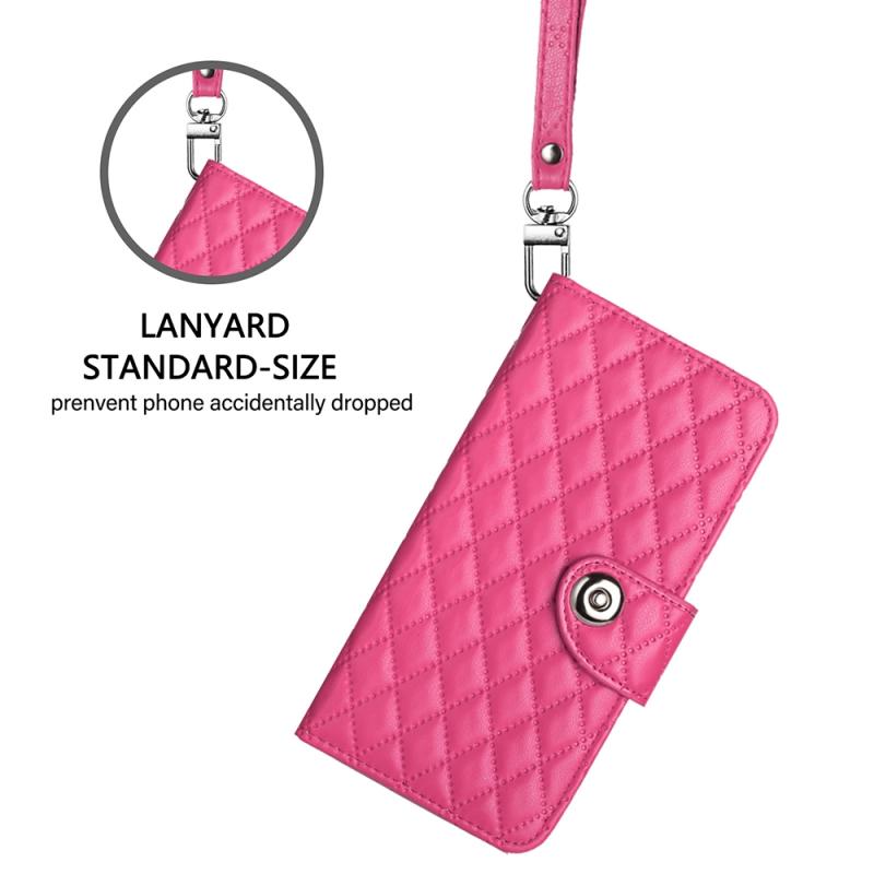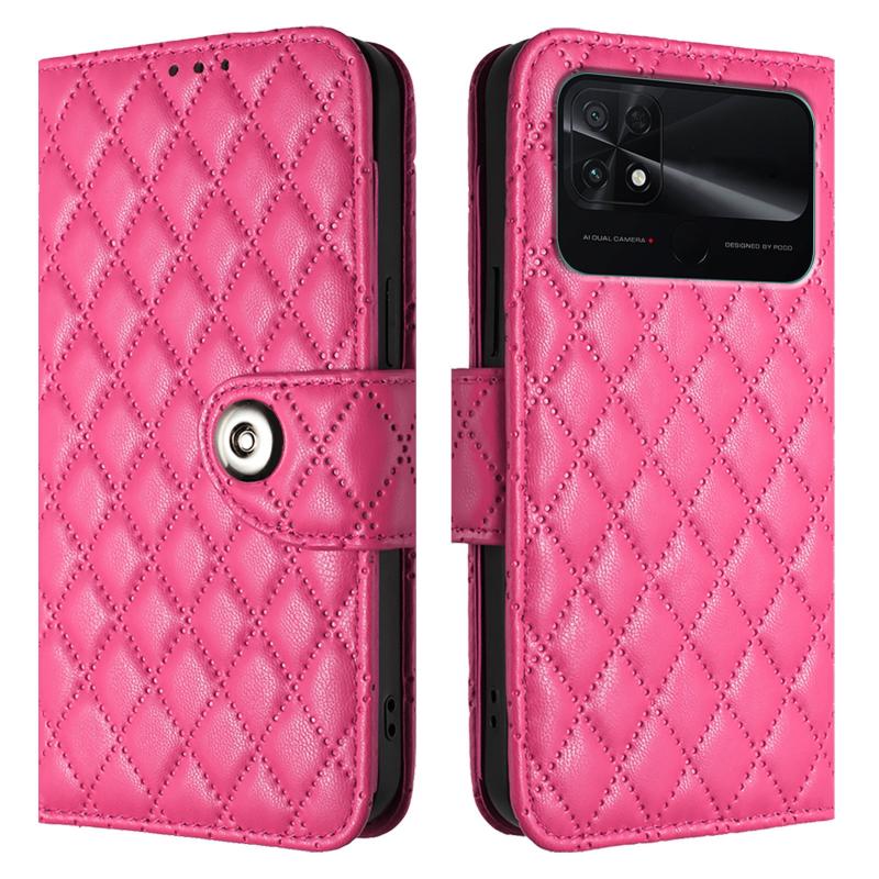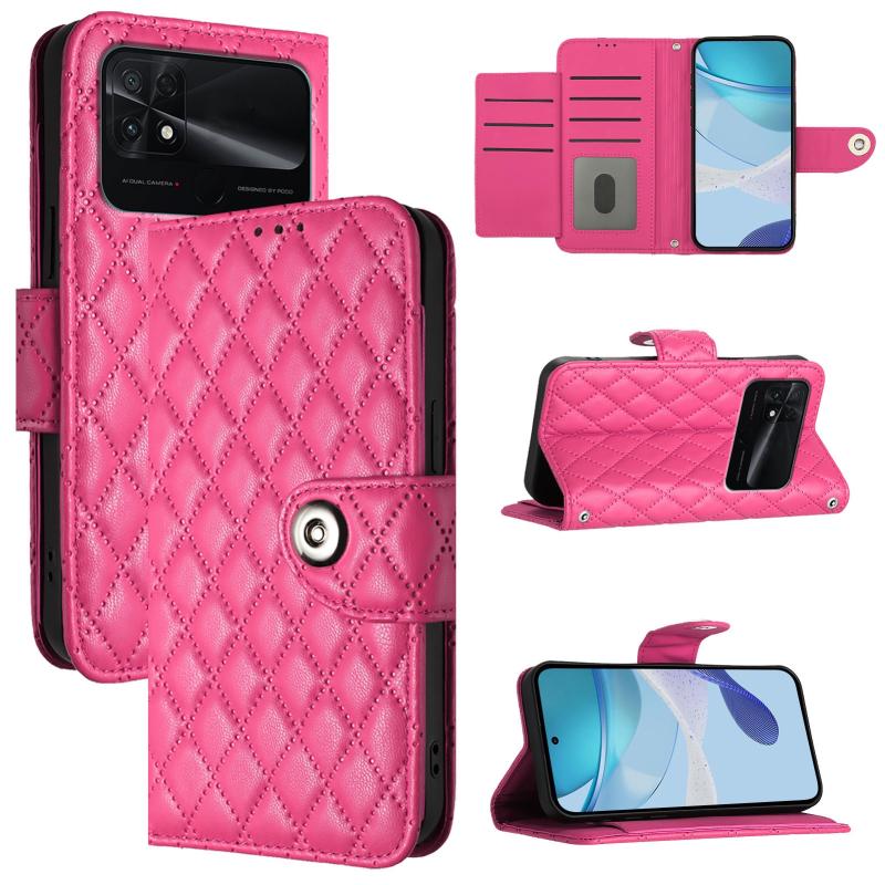 For Xiaomi Poco C40 Rhombic Texture Flip Leather Phone Case with Lanyard(Rose Red)