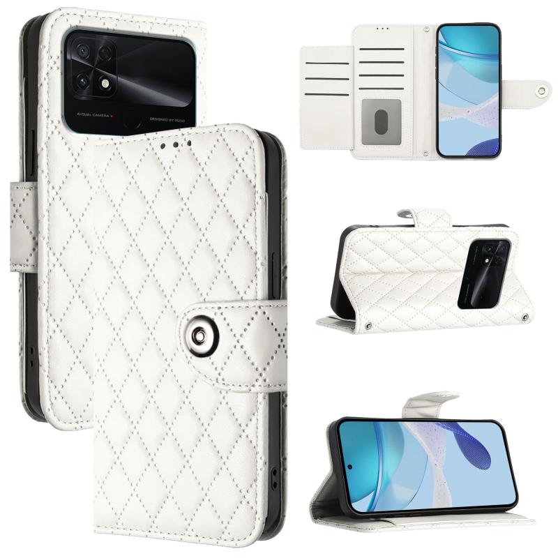 For Xiaomi Poco C40 Rhombic Texture Flip Leather Phone Case with Lanyard(White)