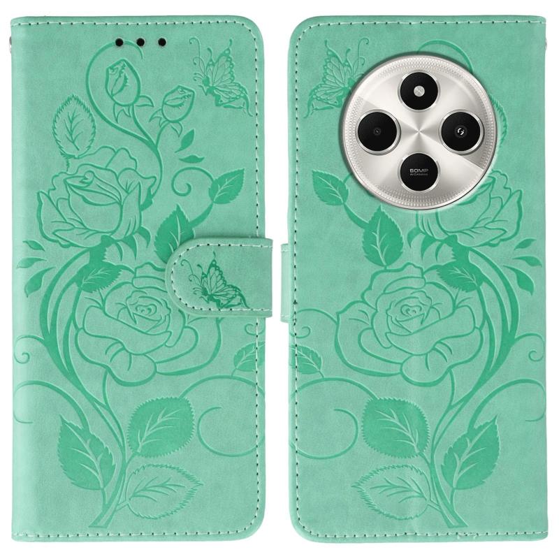For Xiaomi Poco C75 4G / Poco M7 Rose Butterfly Embossed Leather Phone Case(Green)