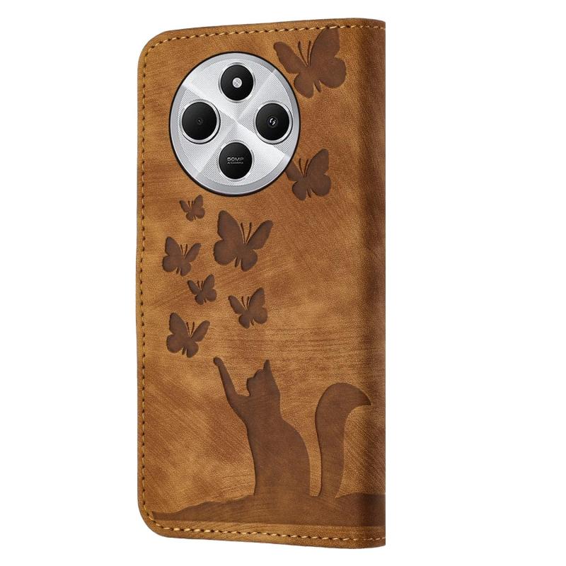 For Xiaomi Poco C75 Butterfly Cat Embossing Flip Leather Phone Case(Brown)