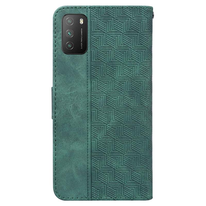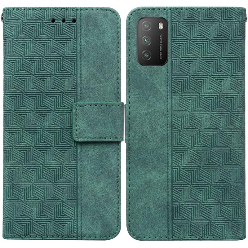 For Xiaomi Poco M3 / Redmi 9 Power Geometric Embossed Leather Phone Case(Green)