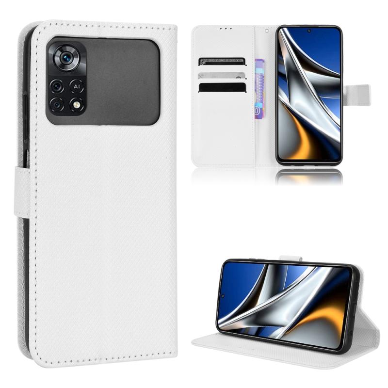 For Xiaomi Poco M4 Pro 5G Fine Hole Diamond Texture Leather Phone Case(White)