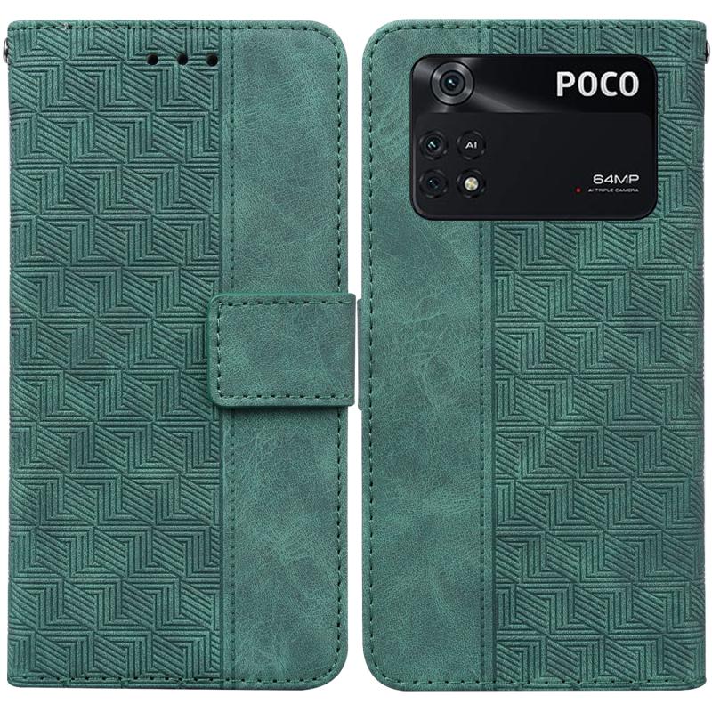 For Xiaomi Poco M4 Pro Geometric Embossed Leather Phone Case(Green)