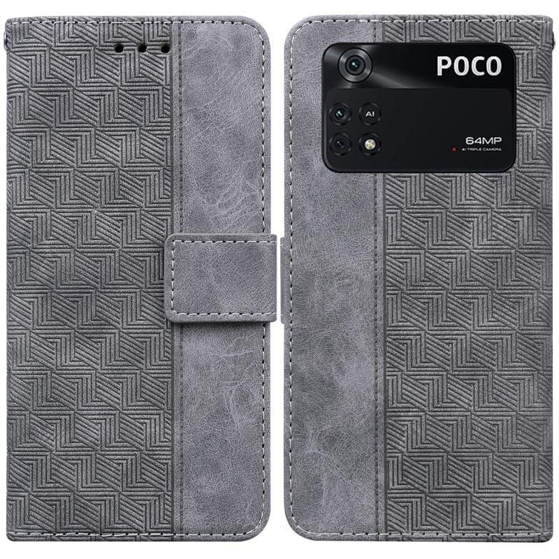 For Xiaomi Poco M4 Pro Geometric Embossed Leather Phone Case(Grey)
