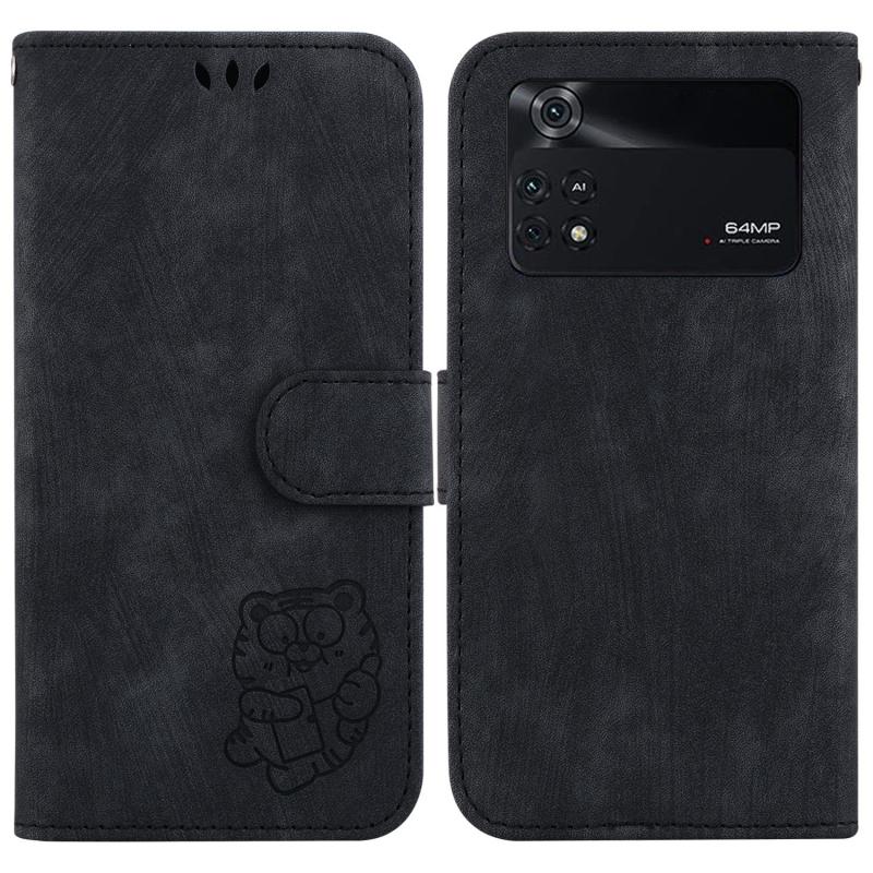 For Xiaomi Poco M4 Pro Little Tiger Embossed Leather Phone Case(Black)
