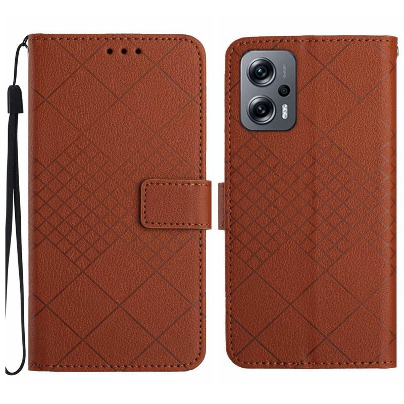 For Xiaomi Poco X4 GT Rhombic Grid Texture Leather Phone Case(Brown)
