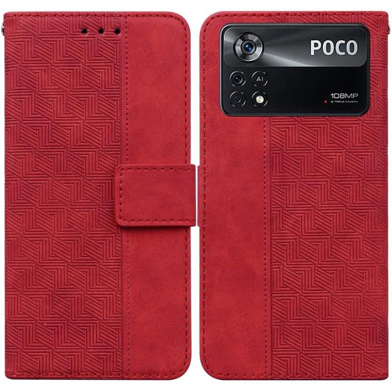 For Xiaomi Poco X4 Pro 5G Geometric Embossed Leather Phone Case(Red)